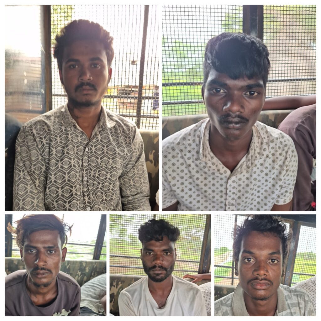 पुलिस अधीक्षक भावना गुप्ता के निर्देशन में थाना प्रभारी सिमगा व उनकी टीम ने त्वरित जांच करते हुए आरोपियों की पतासाजी शुरू की। सटीक सूचना और तकनीकी सहायता के आधार पर पुलिस ने सुनील सांवरा (23), अजय उर्फ मनी सांवरा (19), कार्तिक सांवरा (18), सन्नी सांवरा (19), विष्णु सांवरा (19) सहित 3 अपचारी बालकों को हिरासत में लिया।