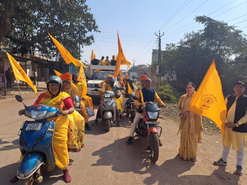 यज्ञ स्थल अंजोरा से वाहन पूजा कर बाईक रैली को झंडा दिखाकर कर रवाना किया गया। रैली पहले महमरा पहुंचा जहां पर पुष्प वर्षा से यात्रा का स्वागत किया गया। फिर सिलोदा रसमड़ा, गनियारी, बोरई ,दमोदा ,खुरसीडीह, खुरसुल, मनगटटा, जोरातराई, कोपेडीह, टेड़ेसरा, सोमनी, सांकरा,धीरी, बिरेझर, थनौद, और अंजोरा की गलियों तक संदेश देते पहुंचे।