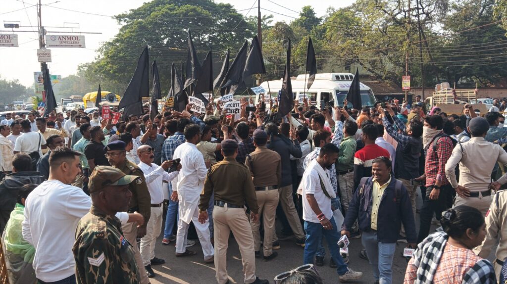 वित्त मंत्री के पुतला दहन कार्यक्रम के दौरान प्रदर्शनकारियों और पुलिस के बीच तीखी झड़प हो गई। स्थिति को नियंत्रित करने के प्रयास में हुई धक्का-मुक्की में शहर के जाने-माने बिल्डर मनोज राजपूत अचेत हो गए। उन्हें तत्काल जिला अस्पताल ले जाया गया, जहाँ दो घंटे तक चिकित्सकों की निगरानी (ऑब्जर्वेशन) में रखने के बाद छुट्टी दे दी गई।