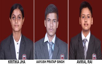 कक्षा 10वीं के आयुष प्रताप सिंह ने 99% प्राप्त कर प्रथम,अविरल राय ने 98.6% प्राप्त कर द्वितीय तथा कृतिका झा ने 97.6% प्राप्त कर तृतीय स्थान पर अपनी जगह बनाई |