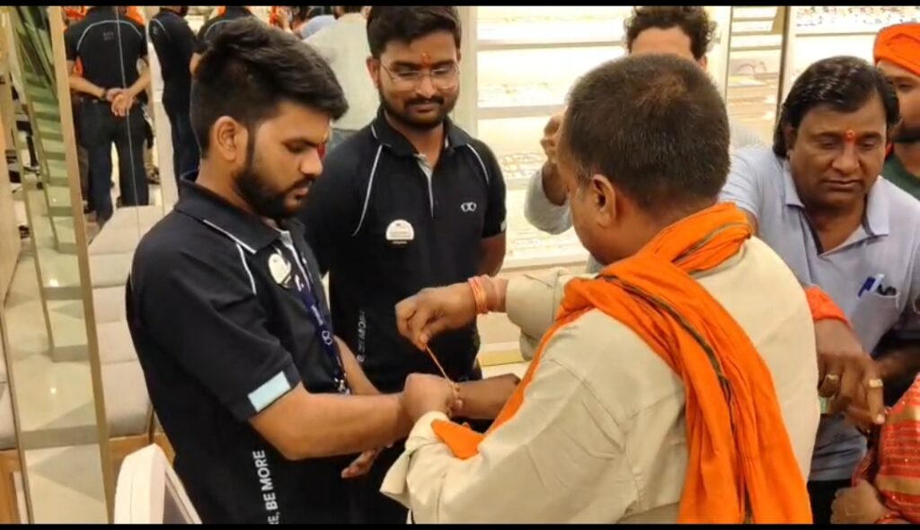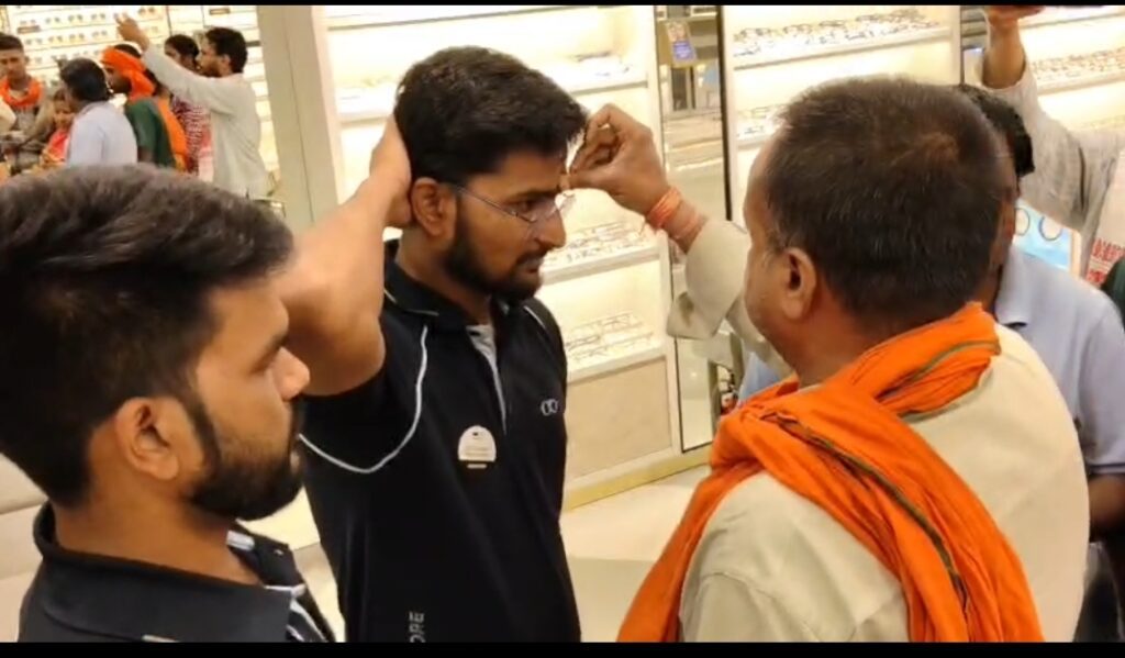 लेंसकार्ट के खिलाफ हिंदू जागरण मंच का विरोध, कर्मचारियों को तिलक-कलावा पहनाकर जताया आक्रोश