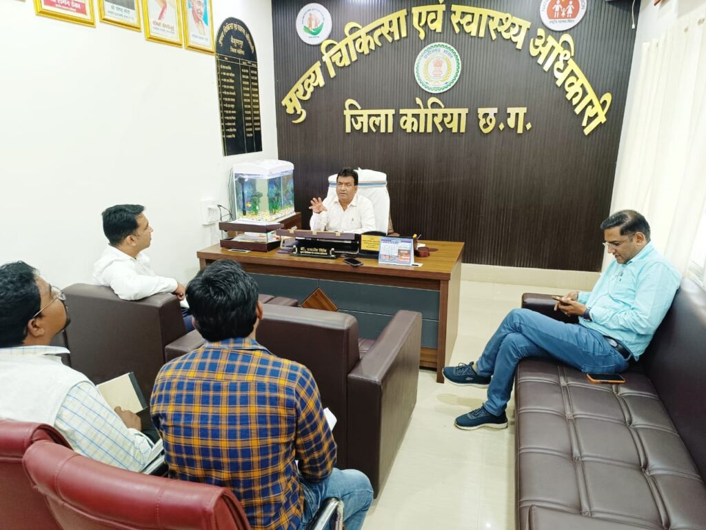 कोरिया | 29 अक्टूबर 2025 को संभागीय संयुक्त संचालक स्वास्थ्य सेवाएं सरगुजा संभाग डॉ अनिल कुमार शुक्ला के द्वारा कार्यालय मुख्य चिकित्सा एवं स्वास्थ्य अधिकारी बैकुंठपुर जिला कोरिया का आकस्मिक निरीक्षण किया गया निरीक्षण के उपरांत वहां पदस्थ समस्त अधिकारियों एवं कर्मचारी की विभागीय समीक्षा बैठक आयोजित की गई बैठक में समस्त अधिकारियों एवं कर्मचारियों को निर्देशित किया गया |