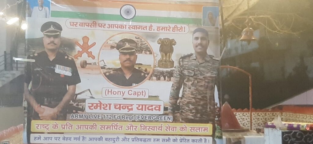 ओनररी कैप्टन रमेश चंद्र यादव ने अपने सैन्य जीवन में अनेक महत्वपूर्ण अभियानों में देश की सेवा की। विशेष रूप से कारगिल युद्ध एवं ऑपरेशन सिन्दूर जैसे चुनौतीपूर्ण अभियानों में उनकी सक्रिय तैनाती रही। एक सामान्य सैनिक के रूप में सेना में भर्ती होकर अपने परिश्रम, अनुशासन और साहस के बल पर ओनररी कैप्टन पद तक पहुंचना न केवल उनकी व्यक्तिगत उपलब्धि है, बल्कि संपूर्ण जनपद के लिए प्रेरणा का स्रोत है। इस अवसर पर उपस्थित सामाजिक प्रतिनिधियों एवं गणमान्य लोगों ने कहा कि उनका संघर्षपूर्ण एवं प्रेरणादायी जीवन जनपद के युवाओं में राष्ट्रप्रेम, अनुशासन और सेवा भावना का संचार करने वाला है। देश प्रेम युवाओ मे सर्वोपरी है।