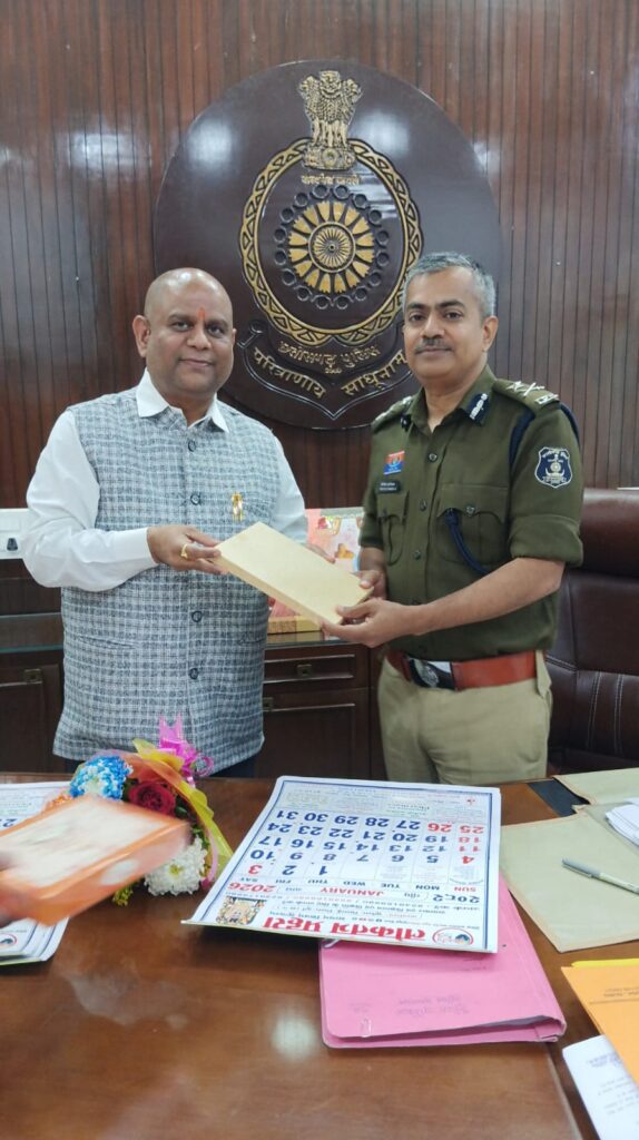 इस दौरान एस.आर.हॉस्पिटल एन्ड कॉलेज के चेयरमेन एवं लोकतंत्र प्रहरी मीडिया ग्रुप के प्रधान संपादक संजय तिवारी ने नववर्ष की प्रकाशित कैलेंडर एवं डायरी भेंट की. जिसका पुलिस महानिरीक्षक अभिषेक शांडिल्य ने एस.आर.हॉस्पिटल एन्ड कॉलेज के चेयरमेन एवं लोकतंत्र प्रहरी मीडिया ग्रुप के कैलेंडर का विमोचन किया और प्रधान संपादक संजय तिवारी सहित लोकतंत्र प्रहरी मीडिया की टीम को बधाई एवं शुभकामनाएं दी.