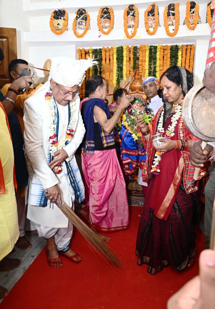 जशपुर | जशपुर ज़िले के ऐतिहासिक एवं प्राचीन श्री जगन्नाथ मंदिर दोकड़ा में इस वर्ष भी रथयात्रा महोत्सव का आयोजन परंपरागत श्रद्धा, भक्ति और भव्यता के साथ किया गया। मंदिर से रथ यात्रा के रवाना होने से पहले मुख्यमंत्री विष्णुदेव साय एवं उनकी धर्मपत्नी कौशल्या देवी साय ने जगन्नाथ मंदिर में पूरे विधि-विधान से भगवान श्री जगन्नाथ, भाई बलभद्र एवं बहन सुभद्रा की पूजा-अर्चना कर प्रदेशवासियों के सुख, समृद्धि और कल्याण की मंगलकामना की। मुख्यमंत्री विष्णुदेव साय ने झाडू से रथयात्रा के मार्ग को बुहारकर छेरा-पहरा की रस्म निभाई।
