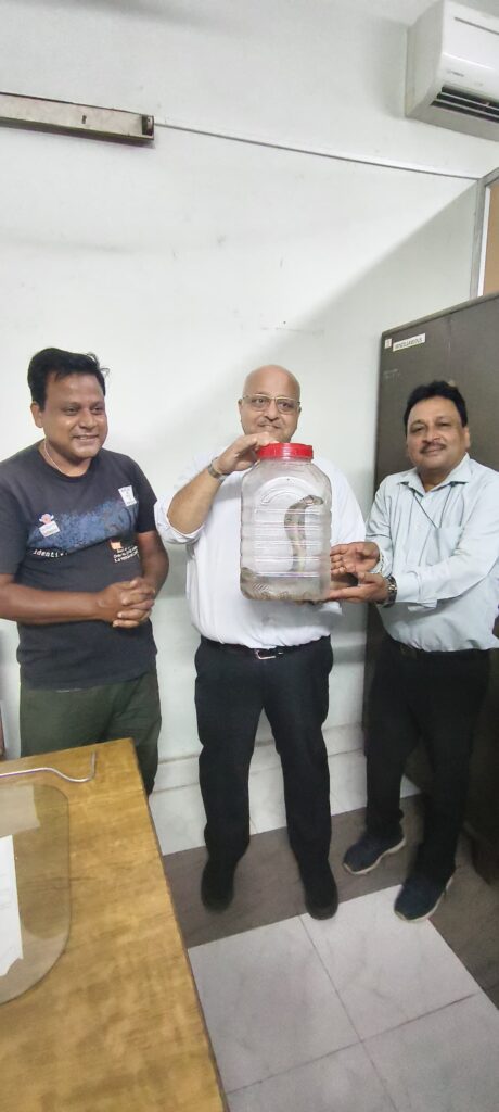 लाइब्रेरी में निकला सांप अत्यंत खतरनाक प्रजाति का बताया गया है इसकी सूचना तत्काल स्नेक कैचर राजेश राव को दी गई जानकारी मिलते ही राजेश राव तत्काल मौके पर पहुंचे और काफी जद्दोजहद के बाद सांप को अपने कब्जे में लिया।