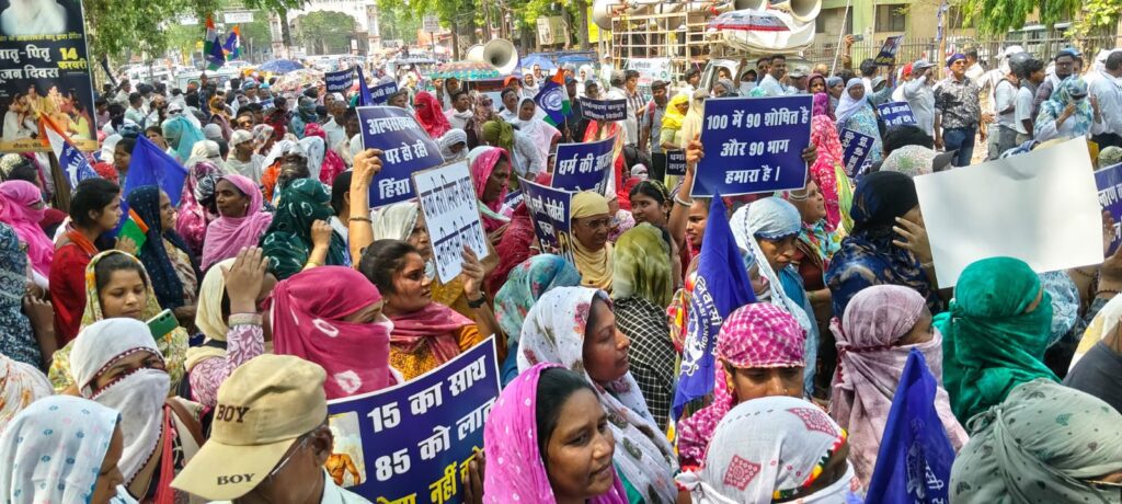 दुर्ग, 07 अप्रैल। छत्तीसगढ़ धर्म स्वातंत्र्य विधेयक-2026 के विरोध में मंगलवार को दुर्ग जिला मुख्यालय में मूल निवासी संघ ने शक्ति प्रदर्शन किया। बड़ी संख्या में कार्यकर्ताओं और महिलाओं ने शहर में रैली निकालकर कलेक्ट्रेट का घेराव किया। प्रदर्शनकारियों ने इस विधेयक को संवैधानिक अधिकारों का हनन बताते हुए सरकार के खिलाफ जमकर नारेबाजी की।