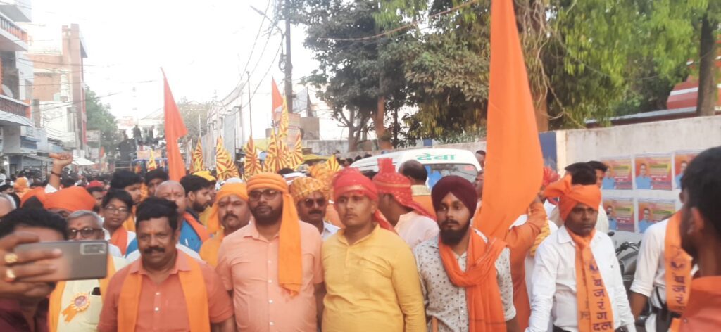 शोभायात्रा में बड़ी संख्या में बच्चे, बुजुर्ग, महिलाएं एवं युवा पारंपरिक परिधान में शामिल हुए। भगवा पगड़ी, हाथों में गदा व त्रिशूल लिए श्रद्धालुओं की उपस्थिति से पूरा नगर राममय हो उठा।