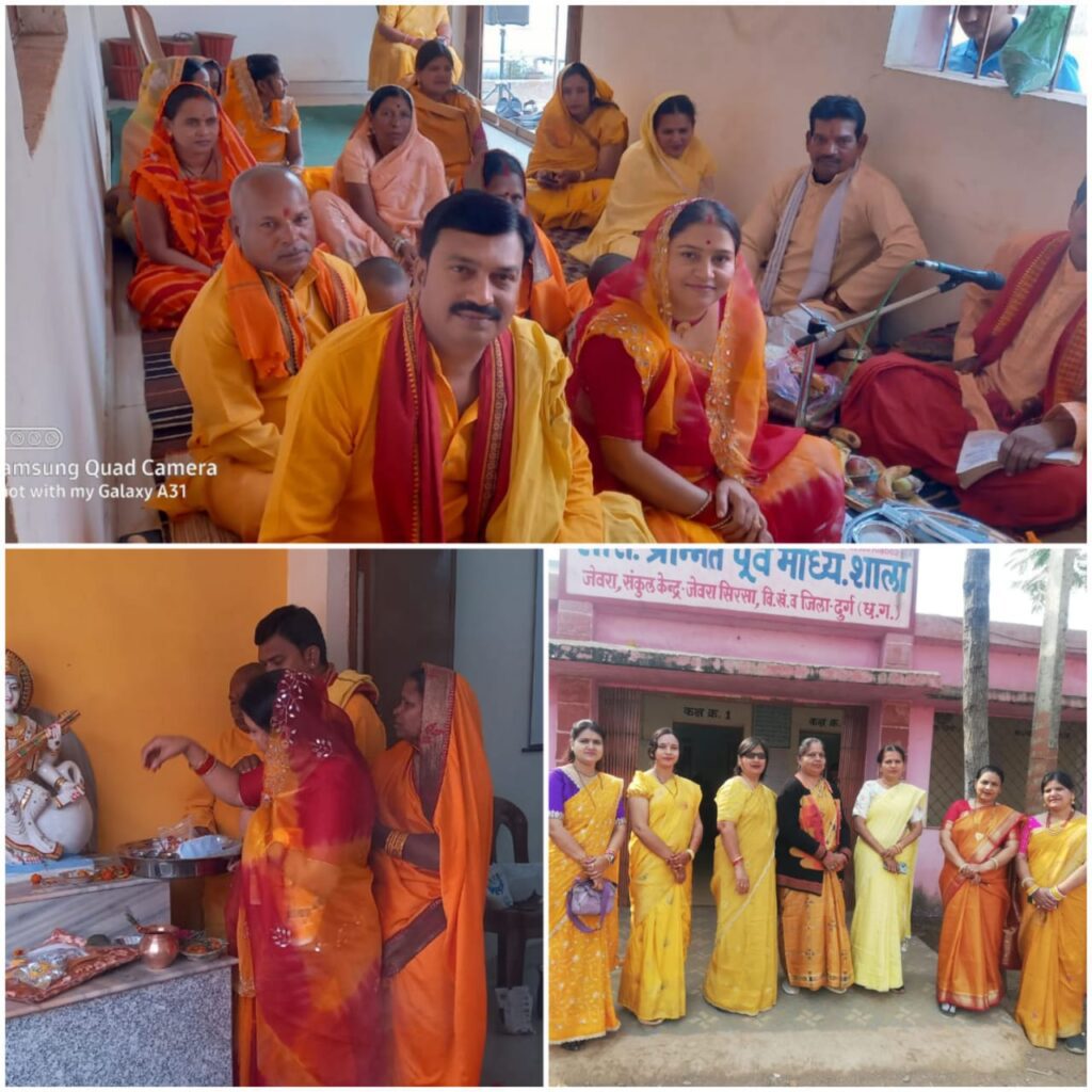 दुर्ग/जेवरा |  शासकीय नवीन माध्यमिक एवं प्राथमिक शाला जेवरा में वसंत पंचमी के पावन अवसर पर भव्य धार्मिक एवं सेवा कार्यक्रम का आयोजन किया गया। शाला प्रांगण में प्रशांत गौतम एवं  मोहिनी गौतम द्वारा अपने पिता स्वर्गीय नरेन्द्र गौतम की पावन स्मृति में माँ सरस्वती की प्रतिमा की प्राण-प्रतिष्ठा कराई गई।