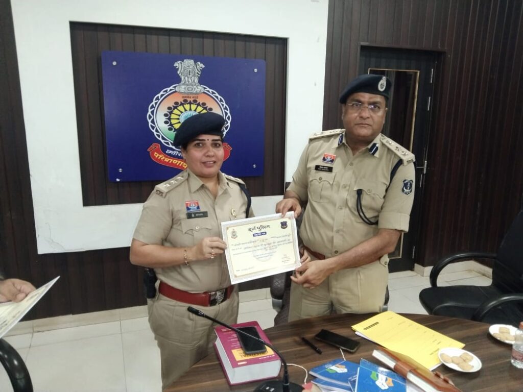 जिसमे थाना जामुल व्दारा 80 से अधिक, थाना दुर्ग व्दारा 47 से अधिक तथा थाना सुपेला व्दारा 35 से अधिक गुम इंसानों को दस्तयाब किया गया है। उक्त कार्यवाही के लिए उप पुलिस अधीक्षक थाना प्रभारी दुर्ग ममता अली शर्मा निरीक्षक विजय यादव थाना प्रभारी सुपेला एवं निरीक्षक राजेश मिश्रा थाना प्रभारी जामुल को प्रशस्ति पत्र देकर सम्मानित किया गया।