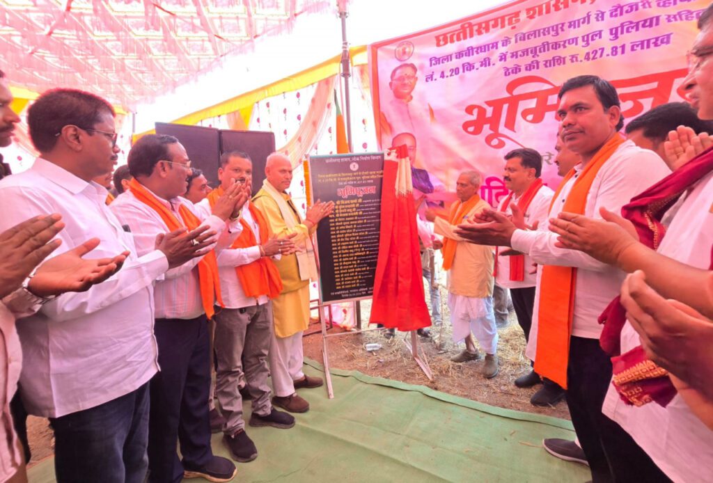 उप मुख्यमंत्री विजय शर्मा के विशेष प्रयासों से इस महत्वपूर्ण मार्ग के निर्माण की स्वीकृति मिली है। यह परियोजना ग्रामीण अंचलों को मुख्य मार्गों से जोड़ते हुए क्षेत्रीय विकास को नई गति प्रदान करेगी। भूमिपूजन कार्यक्रम के दौरान कृषक कल्याण बोर्ड के अध्यक्ष सुरेश चंद्रवंशी, जिला पंचायत अध्यक्ष ईश्वरी साहू, नितेश अग्रवाल, उपाध्यक्ष कैलाश चंद्रवंशी पूर्व जिला पंचायत अध्यक्ष विदेशी राम धुर्वे सहित जनप्रतिनिधियों, अधिकारियों एवं बड़ी संख्या में स्थानीय नागरिकों की उपस्थिति रही।