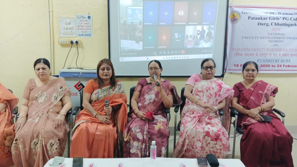 दुर्ग। शासकीय डॉ. वामन वासुदेव पाटणकर कन्या स्नातकोत्तर महाविद्यालय, दुर्ग में सात दिवसीय फैकल्टी डेवलपमेंट प्रोग्राम (FDP) का भव्य समापन हुआ। ‘लैंगिक समानता के राजदूत के रूप में संकाय सदस्यों का उन्नयन’ विषय पर आधारित इस कार्यक्रम का आयोजन प्राचार्य डॉ. रंजना श्रीवास्तव के मार्गदर्शन में किया गया।